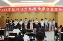 2014年8月22日,虹潤公司一年一度的“圓夢助學(xué)行動”捐資助學(xué)儀式在虹潤科技園辦公大樓四樓禮堂隆重舉行。順昌縣委副書記易才卿、順昌縣關(guān)工委主任黃春娣、順昌縣政協(xié)副主席黃為雄、順昌縣文體局局長李元生、團(tuán)縣委書記吳詩源、順昌縣工會副主席蘭榮妹、虹潤公司董事長林善平以及相關(guān)部門領(lǐng)導(dǎo)出席了儀式。