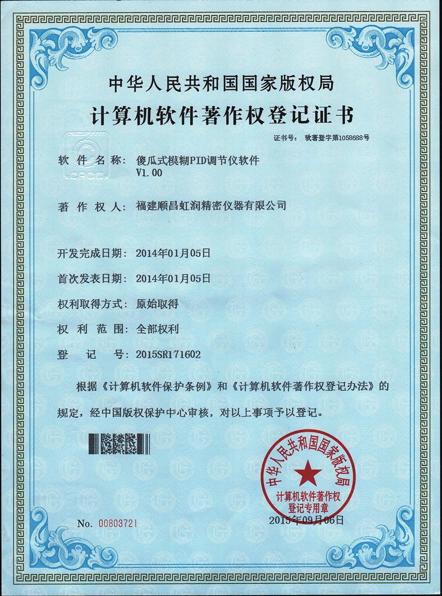 | 人工智能模糊PID調(diào)節(jié)器 軟件登記證書(shū) | 傻瓜式模糊PID調(diào)節(jié)儀 軟件登記證書(shū) |