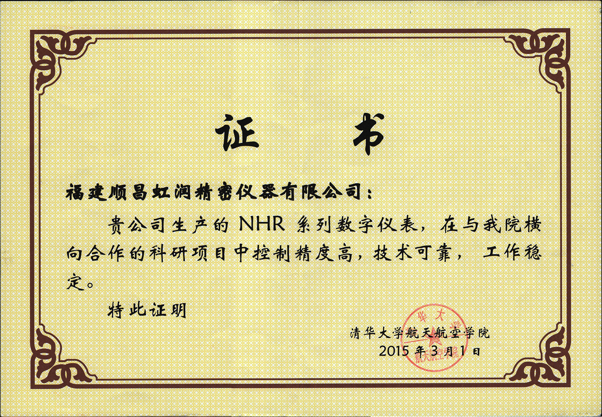 近日,由虹潤公司生產(chǎn)的自動化顯示控制儀表產(chǎn)品,成功應(yīng)用于清華大學(xué)航空航天學(xué)院橫向合作科研項目,因控制精準(zhǔn),抗干擾性強(qiáng),運(yùn)行穩(wěn)定,受到了清華大學(xué)航空航天學(xué)院科研項目組的廣泛好評,并向虹潤公司頒發(fā)了證書。