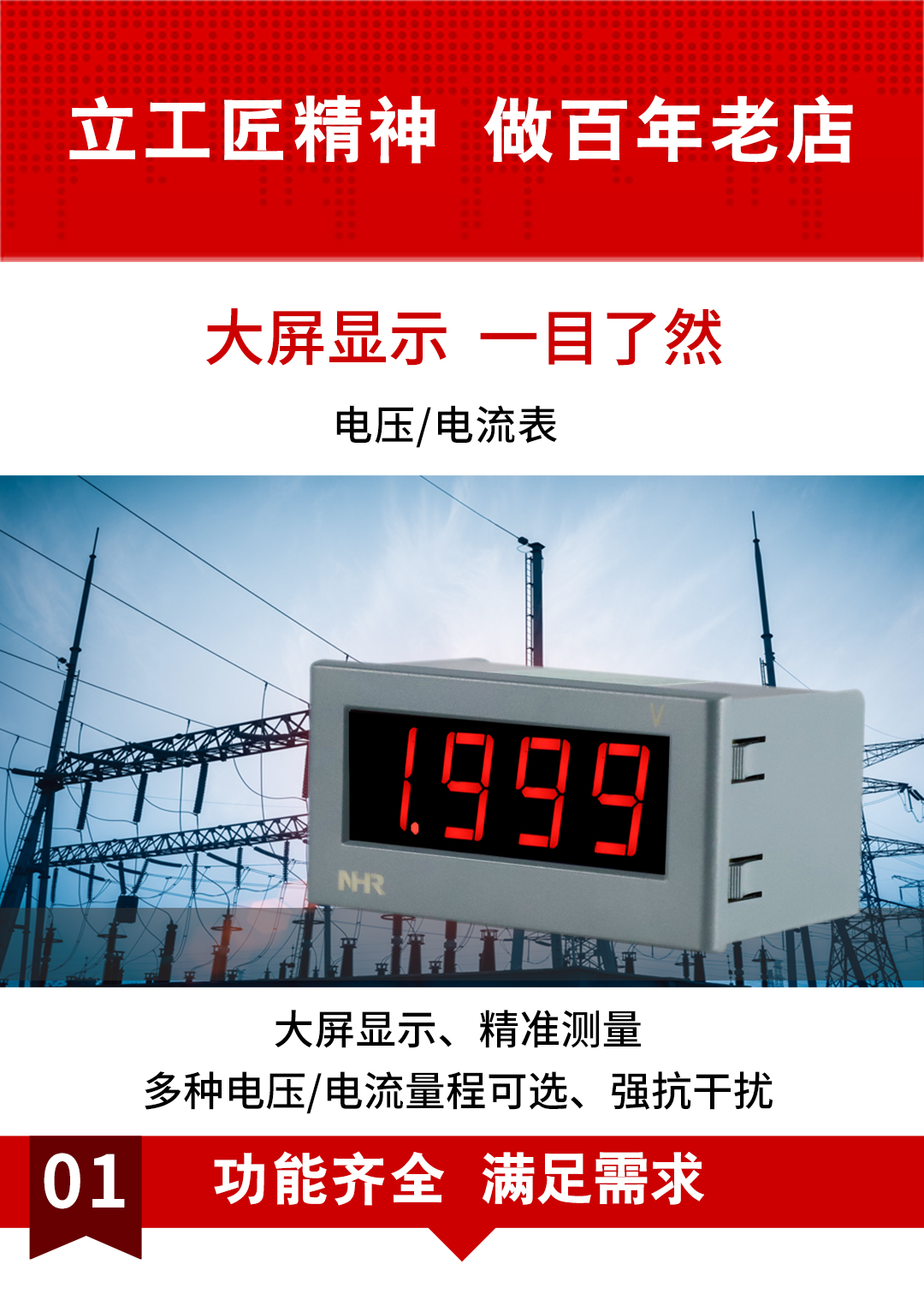虹潤公司是專業(yè)生產數(shù)字電壓表的國家專精特新“小巨人”企業(yè)。生產的電壓/電流表,具有大屏LED顯示,交直流電壓/電流輸入,免設置易接線,性價比高等特點。產品獲得一種交流信號變送器、交直流信號轉換電路、基于DCS技術的盤裝式三相電量表等3項國家發(fā)明專利,主持起草現(xiàn)場設備集成等5項智能制造國家標準,物聯(lián)網電流變送器規(guī)范、物聯(lián)網總體技術智能傳感器特性與分類等2項國家標準,以及直流漏電流傳感器規(guī)范、通信系統(tǒng)多通道數(shù)據(jù)采集控制終端規(guī)范等2項軍用標準,參與國際5G標準制定。產品廣泛應用于電力系統(tǒng)、工業(yè)制造、自動化設備、計量檢測等各種工業(yè)領域。