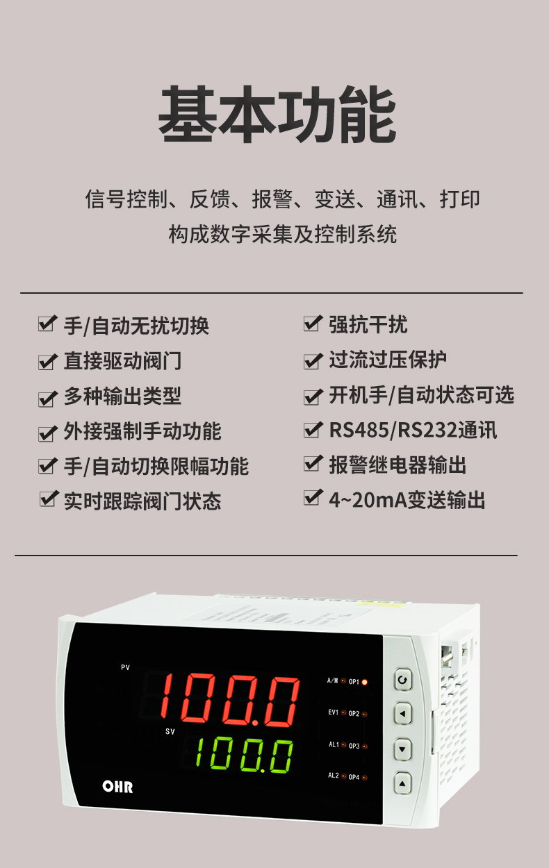 虹潤公司是專業(yè)生產智能手操器的國家專精特新“小巨人”企業(yè),生產的手動操作器,具有手自動無擾切換,直接調節(jié)閥門,多種輸出類型,外接強制手動功能,高抗干擾等特點。產品獲得閥門自動手動無擾動操作控制方法及裝置、模糊PID控制儀及控制方法、移相觸發(fā)控制器等3項國家標準,主持起草工業(yè)過程控制系統(tǒng)用模擬輸入兩位或多位輸出儀表、流程工業(yè)中電氣/儀表和控制系統(tǒng)的試車等2項國家標準,以及通信系統(tǒng)多通道數(shù)據(jù)采集控制終端規(guī)范軍用標準,參與國際5G標準制定,取得手動操作器等3項相關軟件著作權。產品廣泛應用于電力、石化、冶金、化工、造紙、食品、輕工、制藥、熱處理、水處理、機械配套等各種工業(yè)現(xiàn)場。