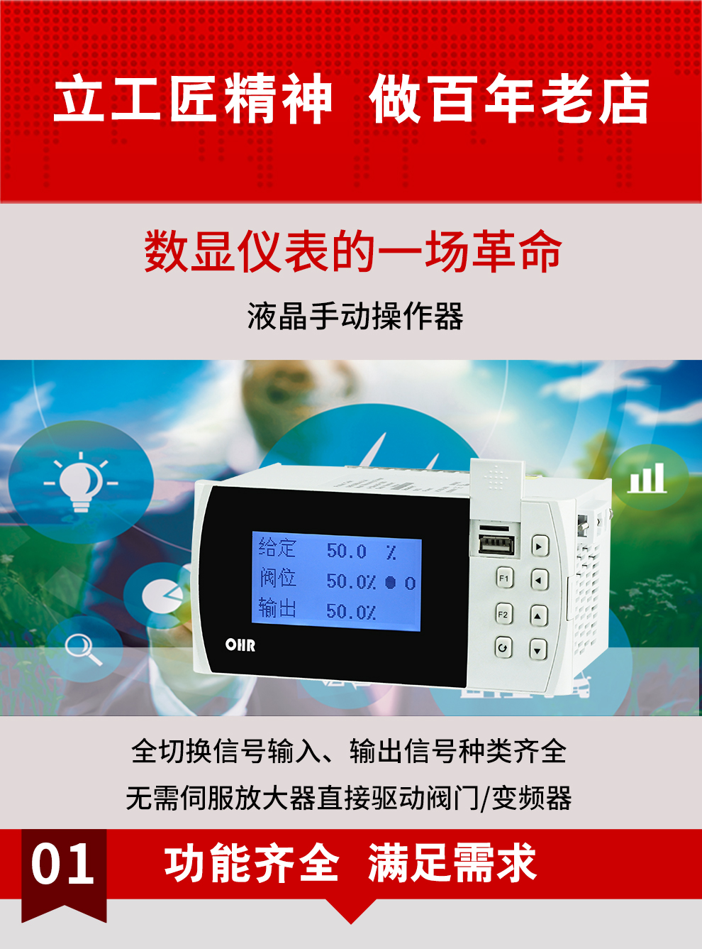 虹潤公司是專業(yè)生產(chǎn)智能手操器的國家專精特新“小巨人”企業(yè),生產(chǎn)的液晶手動操作器,具有全切換信號輸入,通道之間相互隔離,手自動無擾動切換配上位機管理軟件等特點。產(chǎn)品獲得閥門自動手動無擾動操作控制方法及裝置、模糊PID控制儀及控制方法、移相觸發(fā)控制器等3項國家標準,主持起草工業(yè)過程控制系統(tǒng)用模擬輸入兩位或多位輸出儀表、流程工業(yè)中電氣/儀表和控制系統(tǒng)的試車等2項國家標準,以及通信系統(tǒng)多通道數(shù)據(jù)采集控制終端規(guī)范軍用標準,參與國際5G標準制定,取得手動操作器等3項相關(guān)軟件著作權(quán)。產(chǎn)品廣泛應用于電力、石化、冶金、化工、造紙、食品、輕工、制藥、熱處理、水處理、機械配套等各種工業(yè)現(xiàn)場。