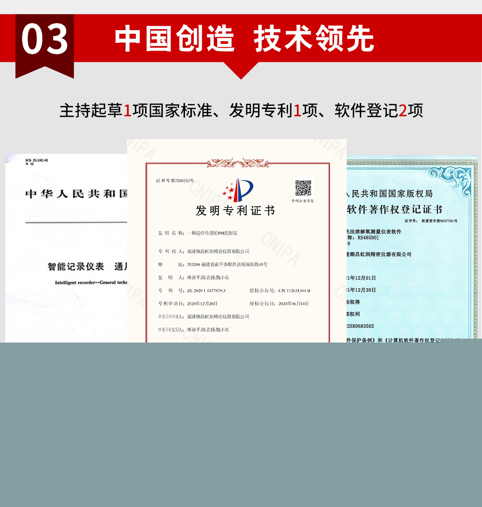 虹潤(rùn)公司是專(zhuān)業(yè)生產(chǎn)水質(zhì)分析儀的國(guó)家專(zhuān)精特新“小巨人”企業(yè)。生產(chǎn)的熒光法溶解氧控制器,具有采用熒光法測(cè)量,中英文菜單切換 ,溫度、壓力、鹽度三重補(bǔ)償,標(biāo)配報(bào)警、變送、RS485通訊等特點(diǎn)。產(chǎn)品獲得產(chǎn)品獲得一種高精度在線溶解氧測(cè)量?jī)x表、智能化控制器等2項(xiàng)國(guó)家發(fā)明專(zhuān)利;主持起草現(xiàn)場(chǎng)設(shè)備集成等5項(xiàng)智能制造國(guó)家標(biāo)準(zhǔn),以及現(xiàn)場(chǎng)設(shè)備工具(FDT)接口規(guī)范、工業(yè)過(guò)程控制系統(tǒng)用模擬輸入兩位或多位輸出儀表、過(guò)程分析技術(shù)系統(tǒng)、液體熒光氧分析儀的性能表示等4項(xiàng)國(guó)家標(biāo)準(zhǔn);參與國(guó)際5G標(biāo)準(zhǔn)制定,取得溶解氧測(cè)量?jī)x表等2項(xiàng)相關(guān)軟件著作權(quán)。產(chǎn)品廣泛應(yīng)用于實(shí)驗(yàn)室、水處理、環(huán)境監(jiān)測(cè)、食品、制藥、農(nóng)業(yè)等諸多領(lǐng)域。