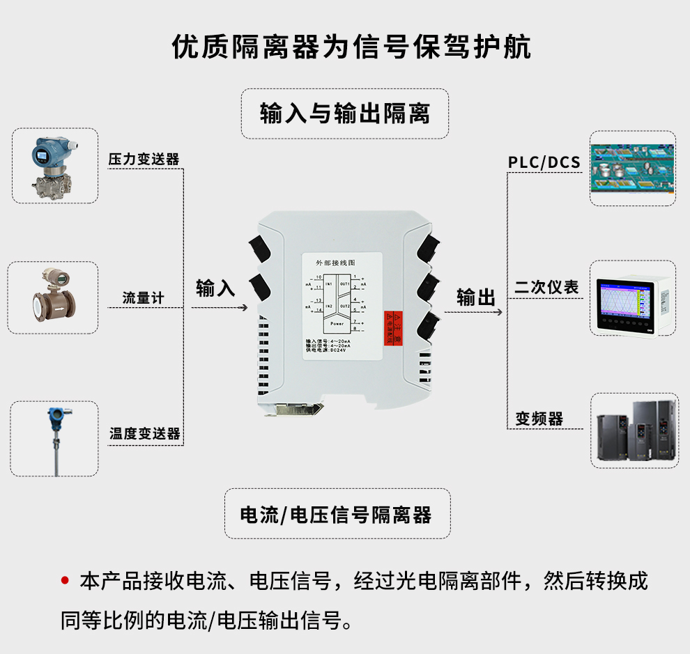 虹潤(rùn)公司是專(zhuān)業(yè)生產(chǎn)隔離器的國(guó)家專(zhuān)精特新“小巨人”企業(yè)。生產(chǎn)的智能信號(hào)隔離器涵蓋電流電壓變送器、溫度變送器、配電器、頻率轉(zhuǎn)換器、開(kāi)關(guān)量轉(zhuǎn)換器及通訊轉(zhuǎn)換器等多種產(chǎn)品類(lèi)型。產(chǎn)品獲得信號(hào)隔離器、一種二端子模塊、無(wú)源信號(hào)隔離器等3項(xiàng)國(guó)家發(fā)明專(zhuān)利,主持起草現(xiàn)場(chǎng)設(shè)備工具(FDT)接口規(guī)范、工業(yè)過(guò)程測(cè)量和控制系統(tǒng)用隔離式安全柵、工業(yè)過(guò)程測(cè)量和控制系統(tǒng)用配電器等3項(xiàng)國(guó)家標(biāo)準(zhǔn),以及通信系統(tǒng)多通道數(shù)據(jù)采集控制終端規(guī)范軍用標(biāo)準(zhǔn),參與國(guó)際5G標(biāo)準(zhǔn)制定,取得導(dǎo)軌式智能隔離器、頻率轉(zhuǎn)換器等3項(xiàng)相關(guān)軟件著作權(quán)。產(chǎn)品廣泛電力、冶金、工業(yè)電爐、變電站、高壓電機(jī)房等需要電隔離的工業(yè)自動(dòng)化控制系統(tǒng)。