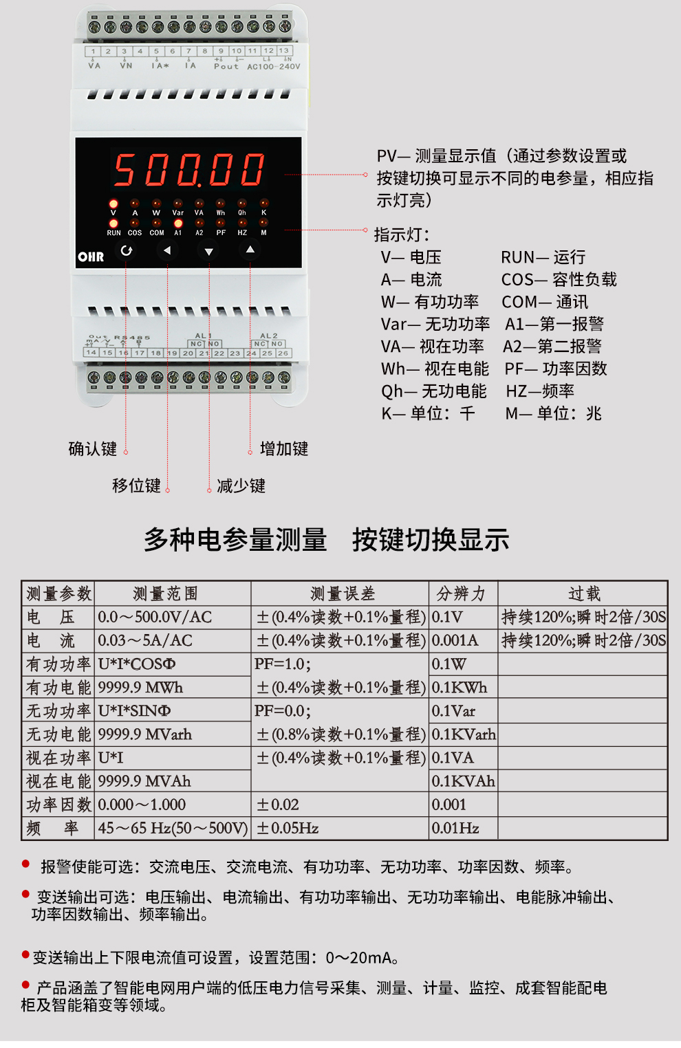 OHR-D13系列單相LED顯示智能電量變送器