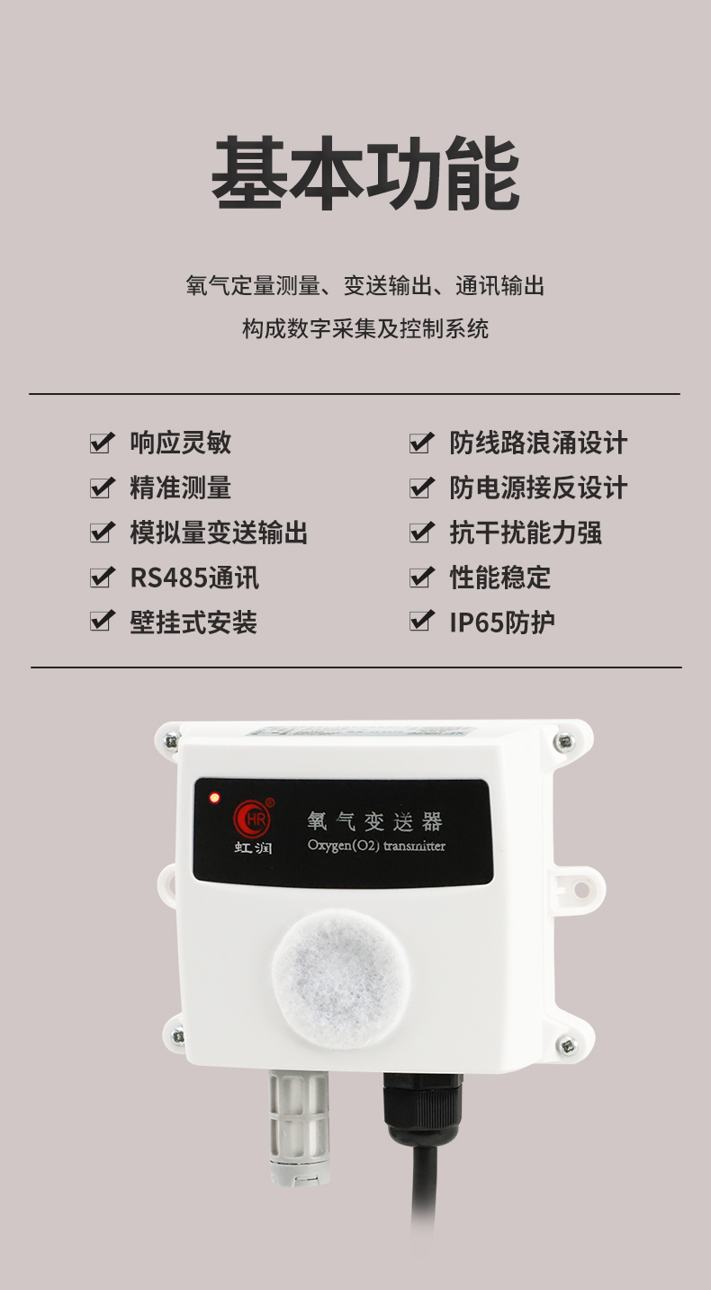 虹潤公司是專業(yè)生產環(huán)境監(jiān)測儀表的國家專精特新“小巨人”企業(yè)。生產的氧氣變送器,具有采用電化學原理,響應靈敏,準確度高,低功耗,模擬量變送輸出或RS485通訊等特點。產品獲得一種農業(yè)監(jiān)控變送器、一種儀表電源等2項實用新型專利,主持起草現(xiàn)場設備集成等5項智能制造國家標準,以及現(xiàn)場設備工具(FDT)接口規(guī)范、物聯(lián)網總體技術智能傳感器特性與分類等2項國家標準,參與國際5G標準制定,取得農業(yè)監(jiān)控變送器等3項相關軟件著作權。產品廣泛應用于機房、配電站、地下車庫、工廠倉庫、食品儲存、養(yǎng)殖場、果蔬林園等環(huán)境場合對氧氣濃度的檢測。