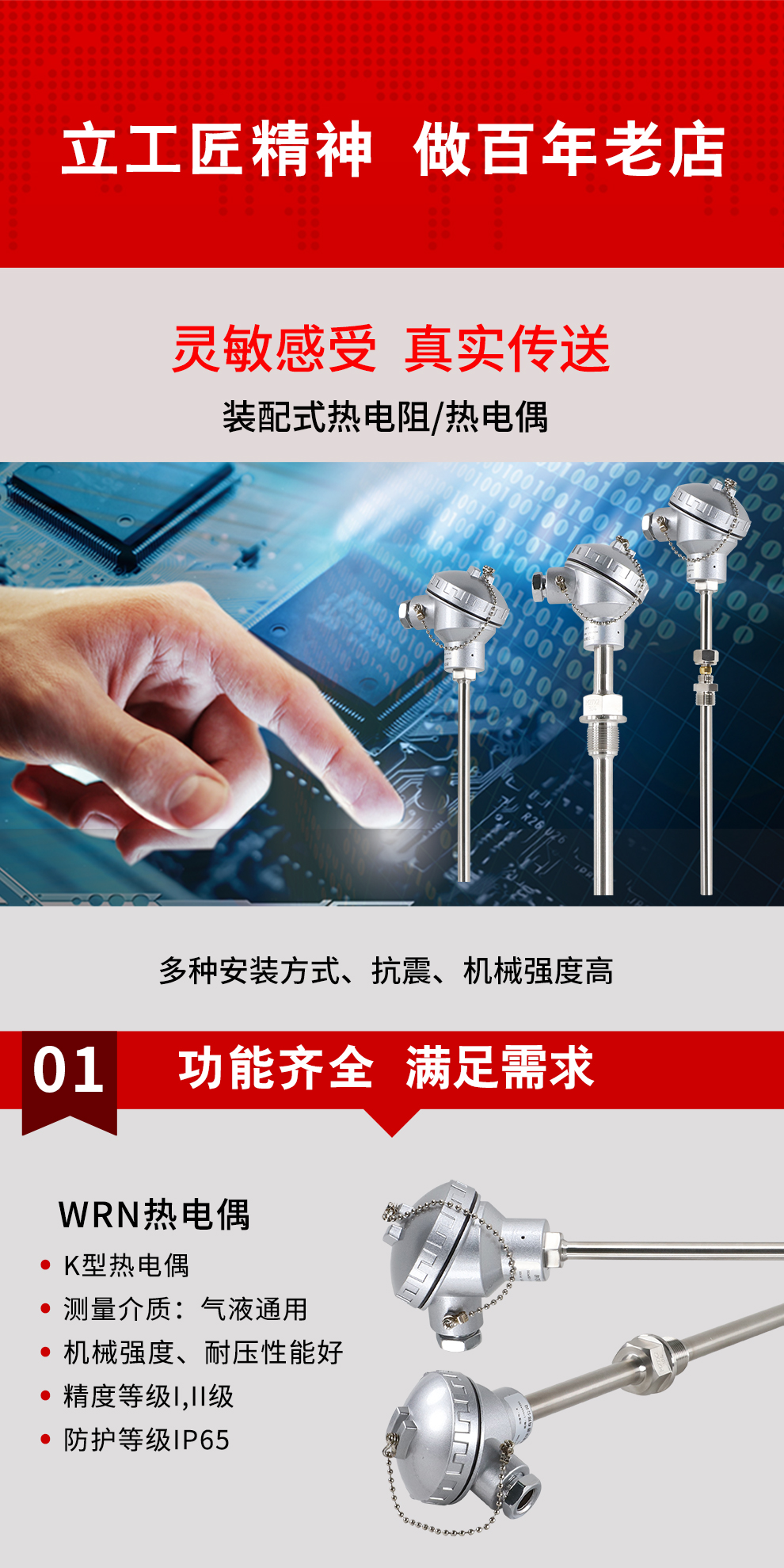 裝配式熱電阻熱電偶作為溫度測量傳感器,通常與溫度變送器、調(diào)節(jié)器及顯示儀表等配套使用,組成過程控制系統(tǒng),用以直接測量或控制各種生產(chǎn)過程中流體、蒸汽和氣體介質(zhì)以及固體表面等溫度。