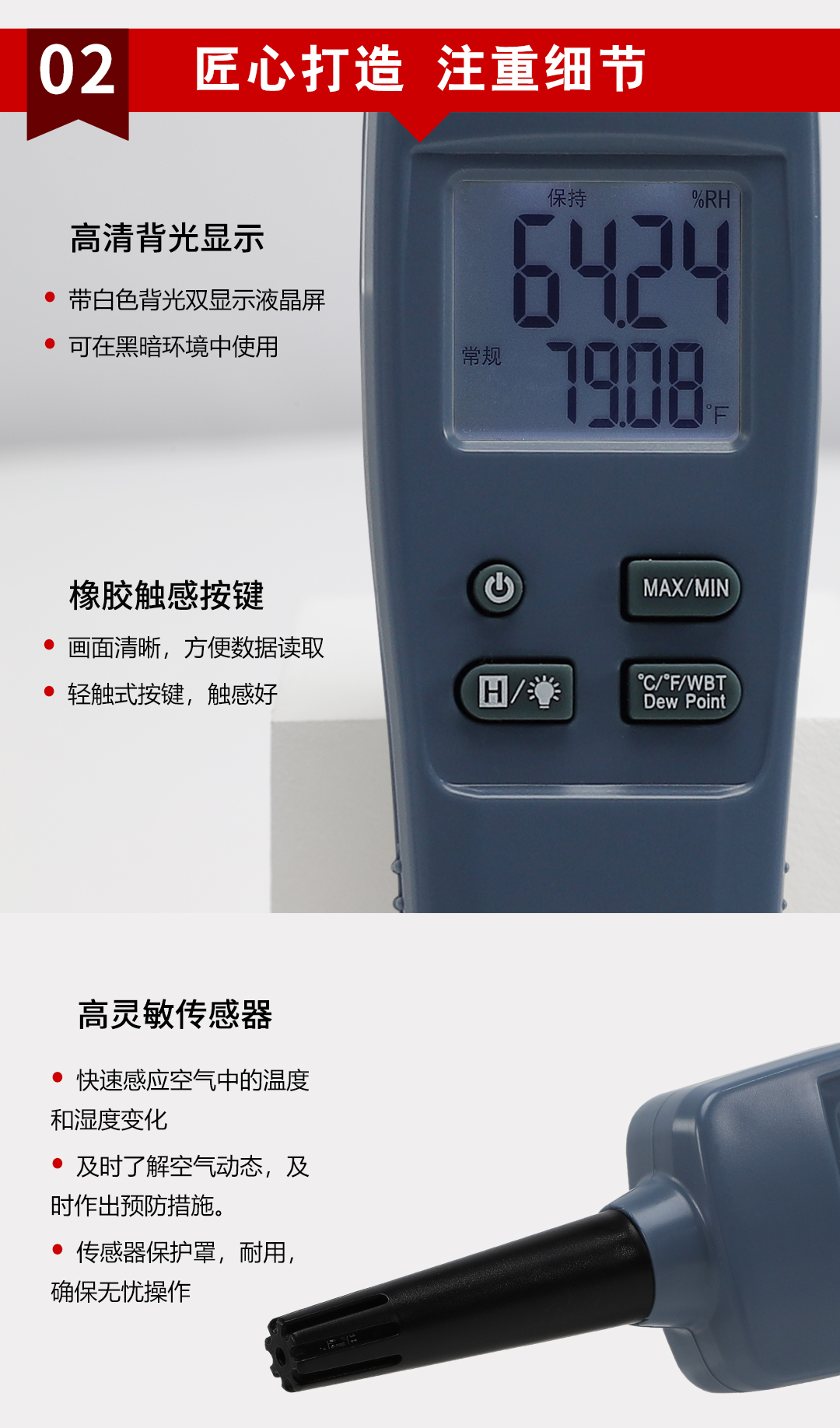 虹潤公司是專業(yè)生產(chǎn)環(huán)境監(jiān)測儀表的國家專精特新“小巨人”企業(yè)。生產(chǎn)的手持式溫濕度檢測儀,具有測量精度高,多參數(shù)測量,最大最小值記錄,小巧便捷、低功耗省電設(shè)計等特點。產(chǎn)品獲得一種手持式低功耗溫濕度檢測儀、大屏幕溫濕度記錄儀等2項國家發(fā)明專利,主持起草物聯(lián)網(wǎng)智能溫度儀表通用技術(shù)條件、冷鏈溫度記錄儀等2項國家標準,以及通信系統(tǒng)多通道數(shù)據(jù)采集控制終端規(guī)范軍用標準,以及現(xiàn)場設(shè)備集成等5項智能制造國家標準,參與國際5G標準制定,取得環(huán)境溫濕度測試儀等3項相關(guān)軟件著作權(quán)。產(chǎn)品廣泛應(yīng)用于實驗室、博物館、農(nóng)業(yè)大棚、生產(chǎn)車間、倉庫、配電機房等諸多領(lǐng)域。