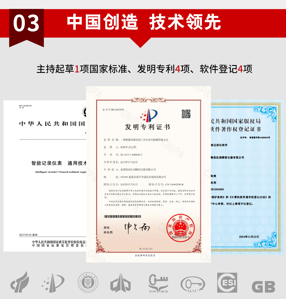 虹潤公司是專業(yè)生產(chǎn)水質(zhì)分析儀的國家專精特新“小巨人”企業(yè)。生產(chǎn)的水質(zhì)多參數(shù)監(jiān)測記錄儀,具有多參數(shù)采集同屏顯示,數(shù)據(jù)記錄與轉(zhuǎn)存,支持WiFi或4G實現(xiàn)數(shù)據(jù)云方案,內(nèi)置與外配組態(tài)軟件等特點。產(chǎn)品獲得一種適應(yīng)性強(qiáng)PH控制儀、嵌入式數(shù)據(jù)采集工作站、數(shù)據(jù)采集控制工作站、無紙記錄儀、智能化控制器等5項國家發(fā)明專利;主持起草通信系統(tǒng)多通道數(shù)據(jù)采集控制終端規(guī)范軍用標(biāo)準(zhǔn),物聯(lián)網(wǎng)智能記錄儀表通用技術(shù)條件國家標(biāo)準(zhǔn),以及現(xiàn)場設(shè)備集成等5項智能制造國家標(biāo)準(zhǔn),參與國際5G標(biāo)準(zhǔn)制定;取得PH無紙記錄儀等7項相關(guān)軟件著作權(quán)。產(chǎn)品廣泛應(yīng)用于實驗室、水處理、環(huán)境監(jiān)測、食品、制藥、農(nóng)業(yè)、工業(yè)流程控制等諸多領(lǐng)域。