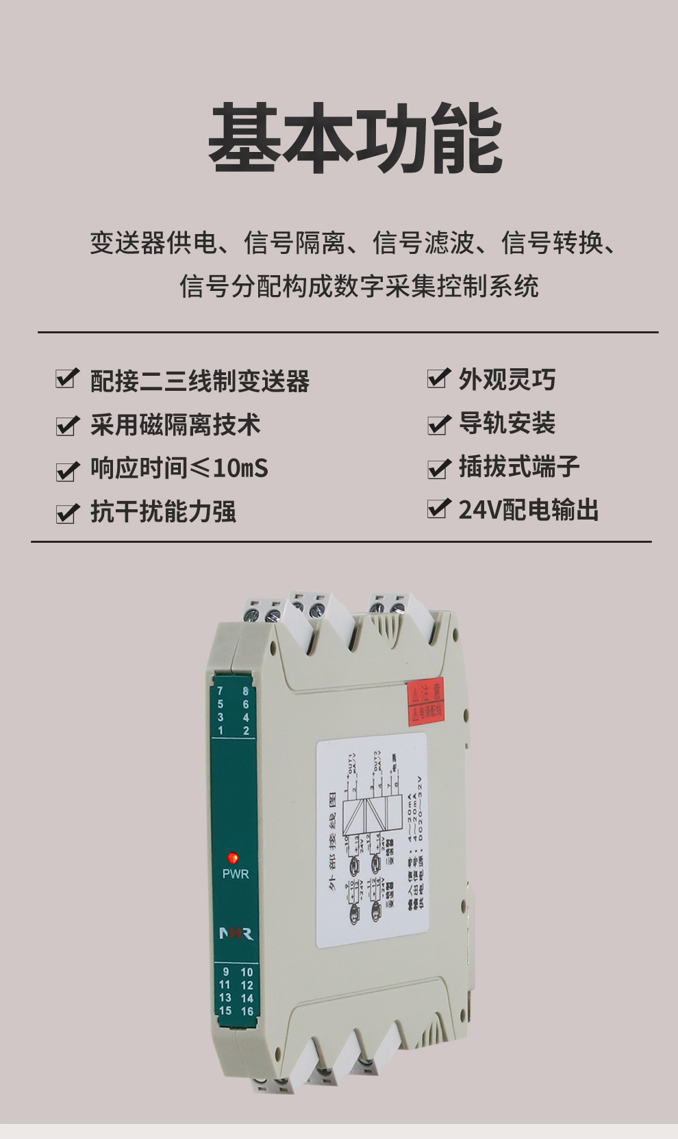 虹潤公司是專業(yè)生產(chǎn)隔離器的國家專精特新“小巨人”企業(yè)。生產(chǎn)的配電器,具有配接二三線制變送器,采用磁隔離技術(shù),響應(yīng)時(shí)間快,抗干擾能力強(qiáng),24V配電輸出,性價(jià)比高等特點(diǎn)。該產(chǎn)品不僅通過德國萊茵 CE 認(rèn)證與 SIL 功能安全認(rèn)證,還獲得信號隔離器、二端子模塊、無源信號隔離器等3項(xiàng)國家發(fā)明專利,主持起草現(xiàn)場設(shè)備工具(FDT)接口規(guī)范、工業(yè)過程測量和控制系統(tǒng)用隔離式安全柵、工業(yè)過程測量和控制系統(tǒng)用配電器等3項(xiàng)國家標(biāo)準(zhǔn),以及通信系統(tǒng)多通道數(shù)據(jù)采集控制終端規(guī)范軍用標(biāo)準(zhǔn),參與國際5G標(biāo)準(zhǔn)制定。產(chǎn)品廣泛應(yīng)用于石油、化工,冶金、電力、食品、光伏能源、污水處理等需要電隔離的工業(yè)自動(dòng)化控制系統(tǒng)。