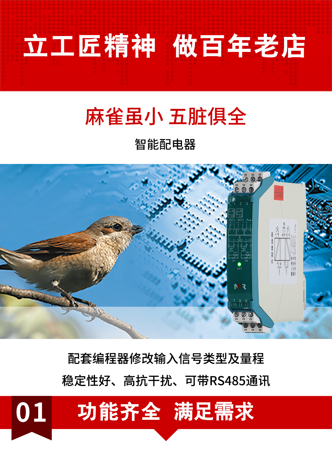 虹潤公司是專業(yè)生產(chǎn)隔離器的國家專精特新“小巨人”企業(yè)。生產(chǎn)的智能配電器,具有配接二三線制變送器,采用光電隔離技術(shù),輸入輸出電源三隔離,傳輸精度0.2%FS,支持485通訊輸出等特點(diǎn)。產(chǎn)品獲得信號隔離器、一種二端子模塊、無源信號隔離器等3項(xiàng)國家發(fā)明專利,主持起草現(xiàn)場設(shè)備工具(FDT)接口規(guī)范、工業(yè)過程測量和控制系統(tǒng)用隔離式安全柵、工業(yè)過程測量和控制系統(tǒng)用配電器等3項(xiàng)國家標(biāo)準(zhǔn),以及通信系統(tǒng)多通道數(shù)據(jù)采集控制終端規(guī)范軍用標(biāo)準(zhǔn)。參與國際5G標(biāo)準(zhǔn)制定。,取得智能隔離器等2項(xiàng)相關(guān)軟件著作權(quán)。產(chǎn)品廣泛應(yīng)用于石油、化工,冶金、電力、食品、光伏能源、污水處理等需要電隔離的工業(yè)自動(dòng)化控制系統(tǒng)。