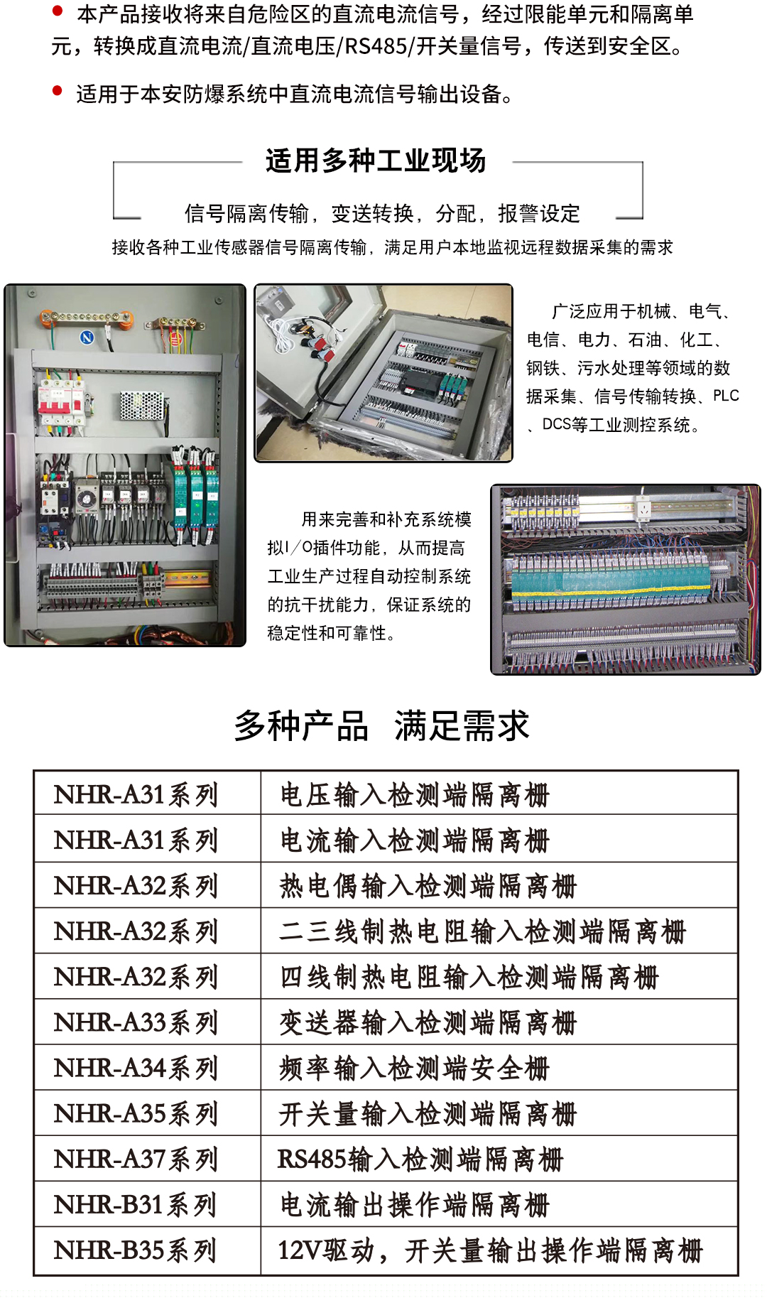 虹潤公司是專業(yè)生產(chǎn)隔離器的國家專精特新“小巨人”企業(yè)。生產(chǎn)的隔離式安全柵涵蓋信號(hào)電流輸入、電壓輸入、熱電阻輸入、熱電偶輸入、頻率輸入、開關(guān)量輸入等多種產(chǎn)品類型。產(chǎn)品獲得具備減震抗干擾能力的溫度變送器、信號(hào)隔離器、一種二端子模塊、無源信號(hào)隔離器等4項(xiàng)國家發(fā)明專利,主持起草物聯(lián)網(wǎng)智能溫度儀表、現(xiàn)場設(shè)備工具(FDT)接口規(guī)范、工業(yè)過程測量和控制系統(tǒng)用溫度變送器等3項(xiàng)國家標(biāo)準(zhǔn),以及通信系統(tǒng)多通道數(shù)據(jù)采集控制終端規(guī)范軍用標(biāo)準(zhǔn)。參與國際5G標(biāo)準(zhǔn)制定,取得智能隔離式安全柵等4項(xiàng)相關(guān)軟件著作權(quán)。產(chǎn)品廣泛應(yīng)用于石油、電力、化工,冶金、智能制造、污水處理等諸多行業(yè)。