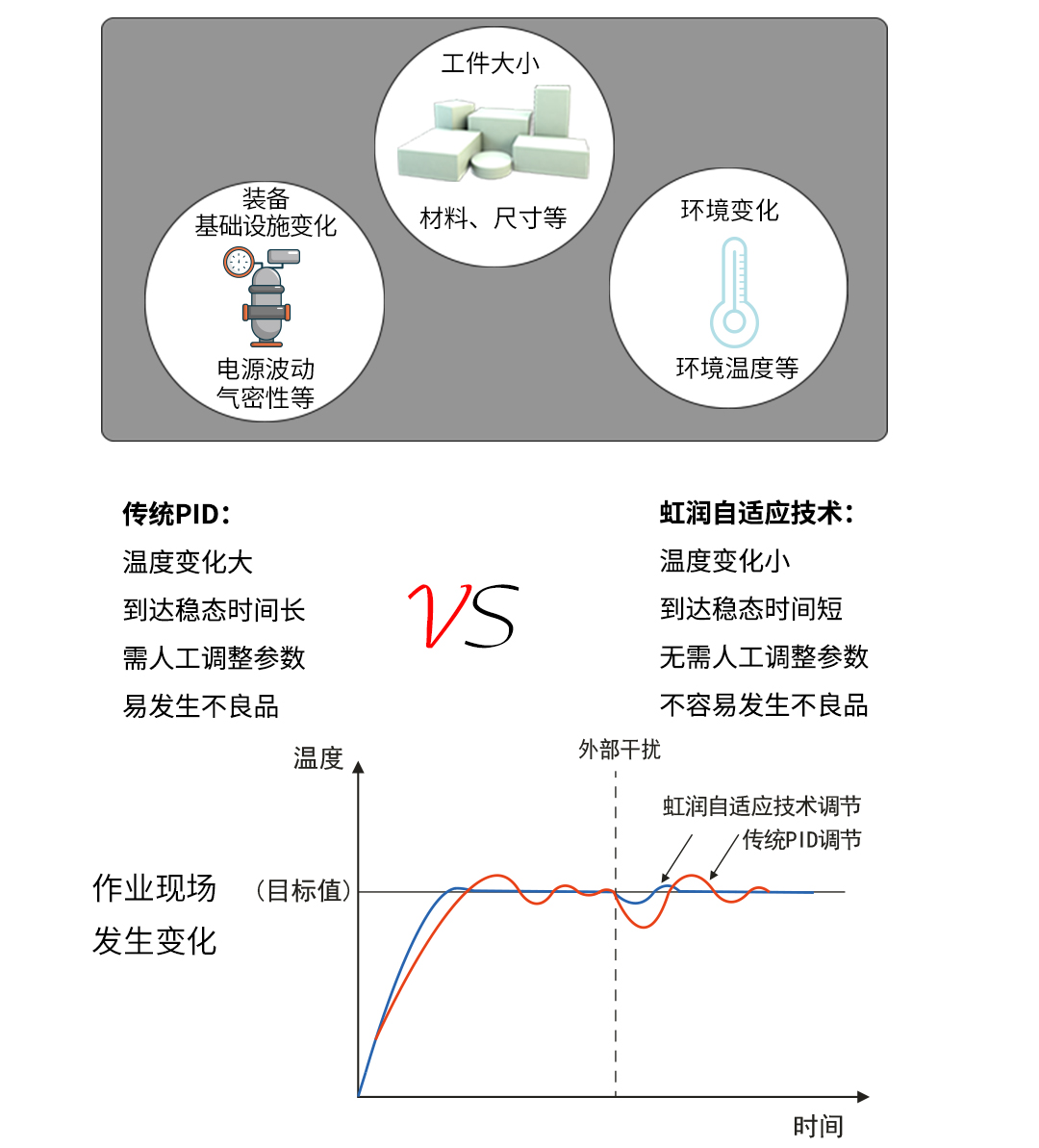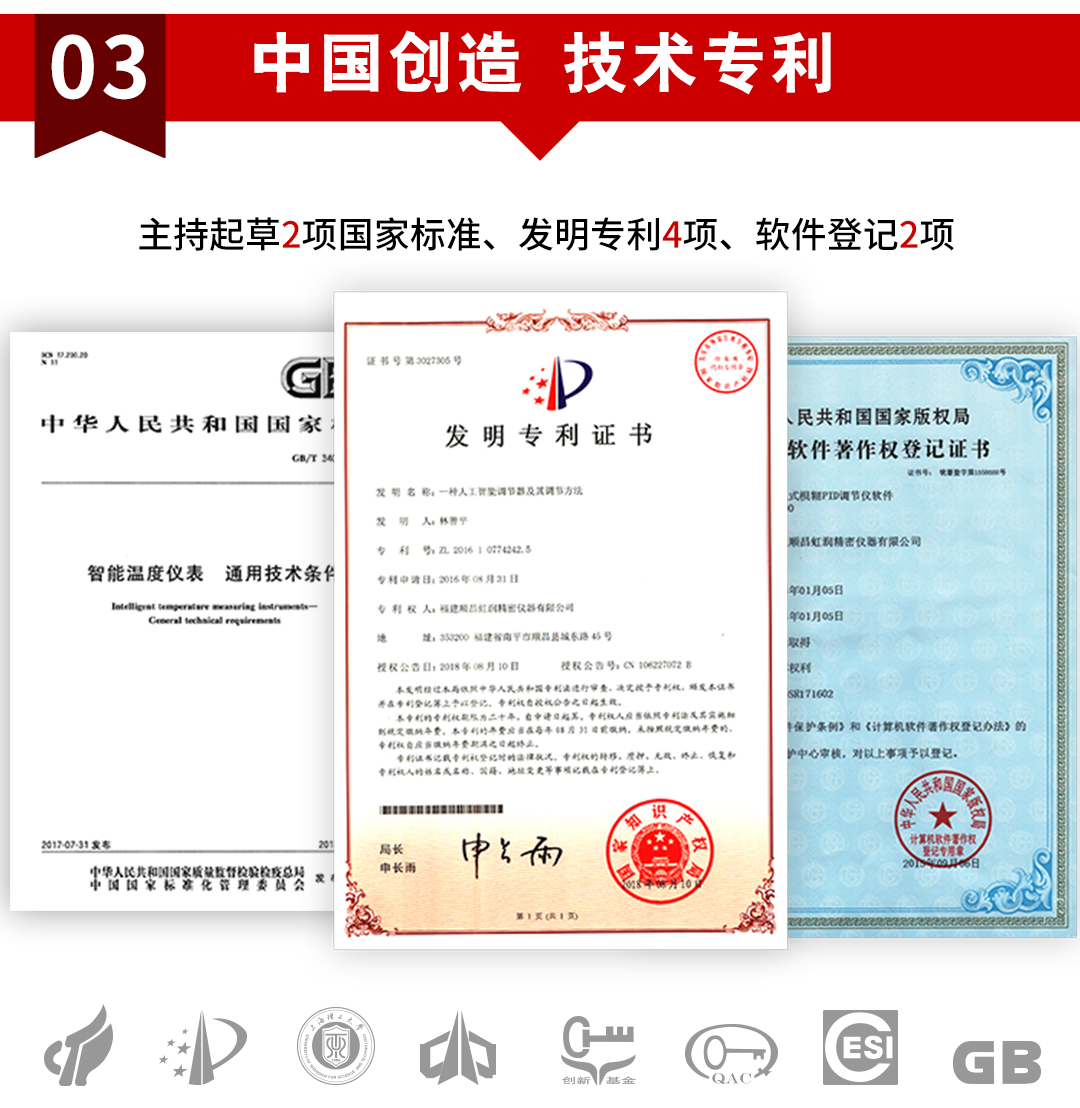 虹潤公司是專業(yè)生產(chǎn)溫控器的國家專精特新“小巨人”企業(yè)。生產(chǎn)的人工智能溫控器,具有真正人工智能算式,無需人工整定參數(shù),控制精度可達±0.1°C,多種輸出類型,高抗干擾等特點。產(chǎn)品獲得模糊PID控制儀及控制方法、人工智能調(diào)節(jié)器、智能化控制器、移相觸發(fā)控制器、閥門自動手動無擾動操作控制方法及裝置等5項國家發(fā)明專利,主持起草工業(yè)過程控制系統(tǒng)用模擬輸入兩位或多位輸出儀表、物聯(lián)網(wǎng)智能溫度儀表通用技術(shù)條件、工業(yè)過程測量和控制系統(tǒng)用智能調(diào)節(jié)器等3項國家標準,以及通信系統(tǒng)多通道數(shù)據(jù)采集控制終端規(guī)范軍用標準,參與國際5G標準制定,取得模糊PID溫控儀等3項相關(guān)軟件著作權(quán)。產(chǎn)品廣泛應(yīng)用于電力、石化,冶金、制藥、食品等幾乎所有工業(yè)現(xiàn)場,實現(xiàn)精準控溫,保障生產(chǎn)安全與質(zhì)量。