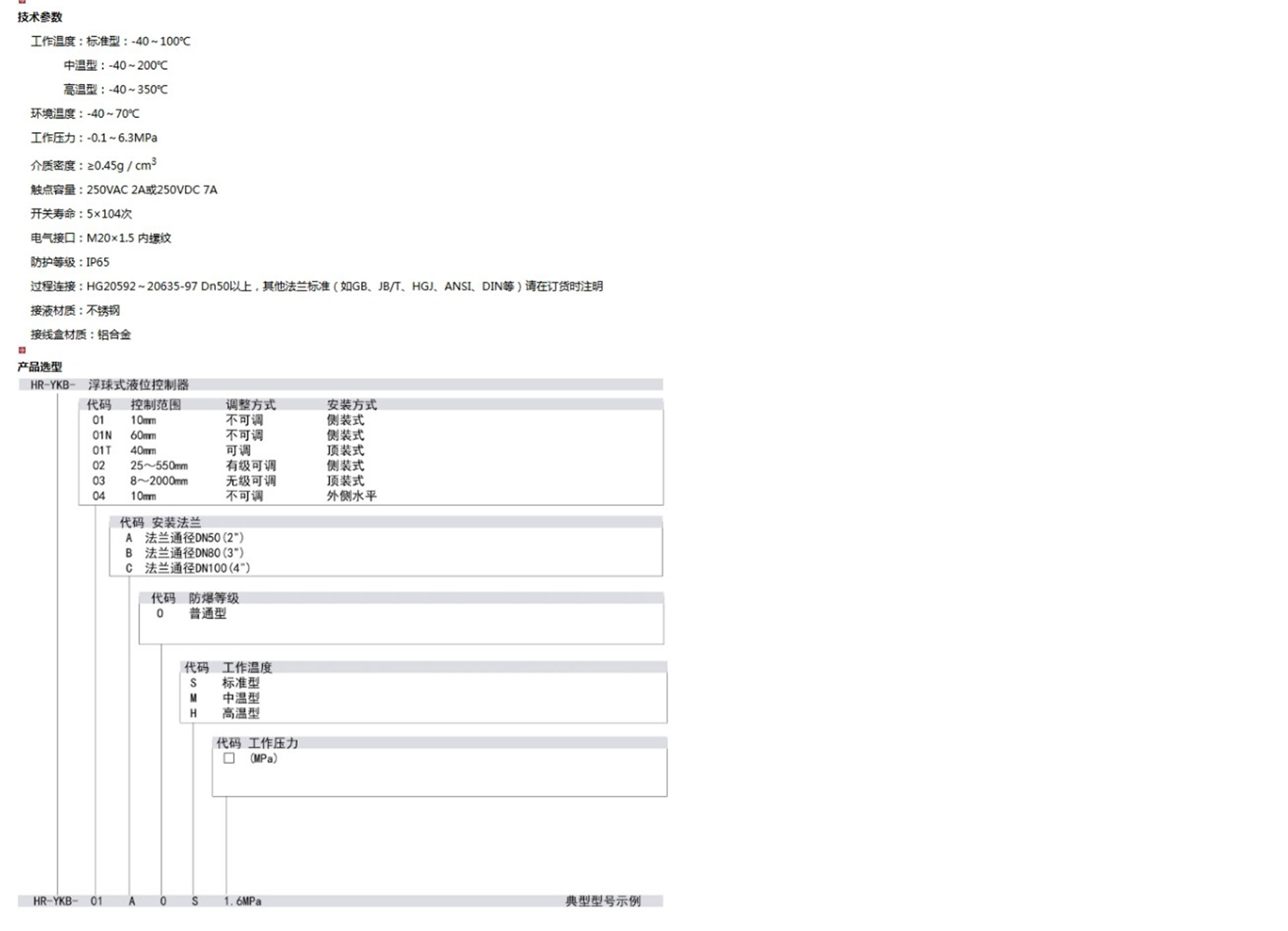 HR-YKB系列浮球式液位控制器,廣泛適用于石油、化工、電力、冶金、食品、制藥、造紙等行業(yè),能實現(xiàn)對各類容器內(nèi)液位的自動報警或控制。
